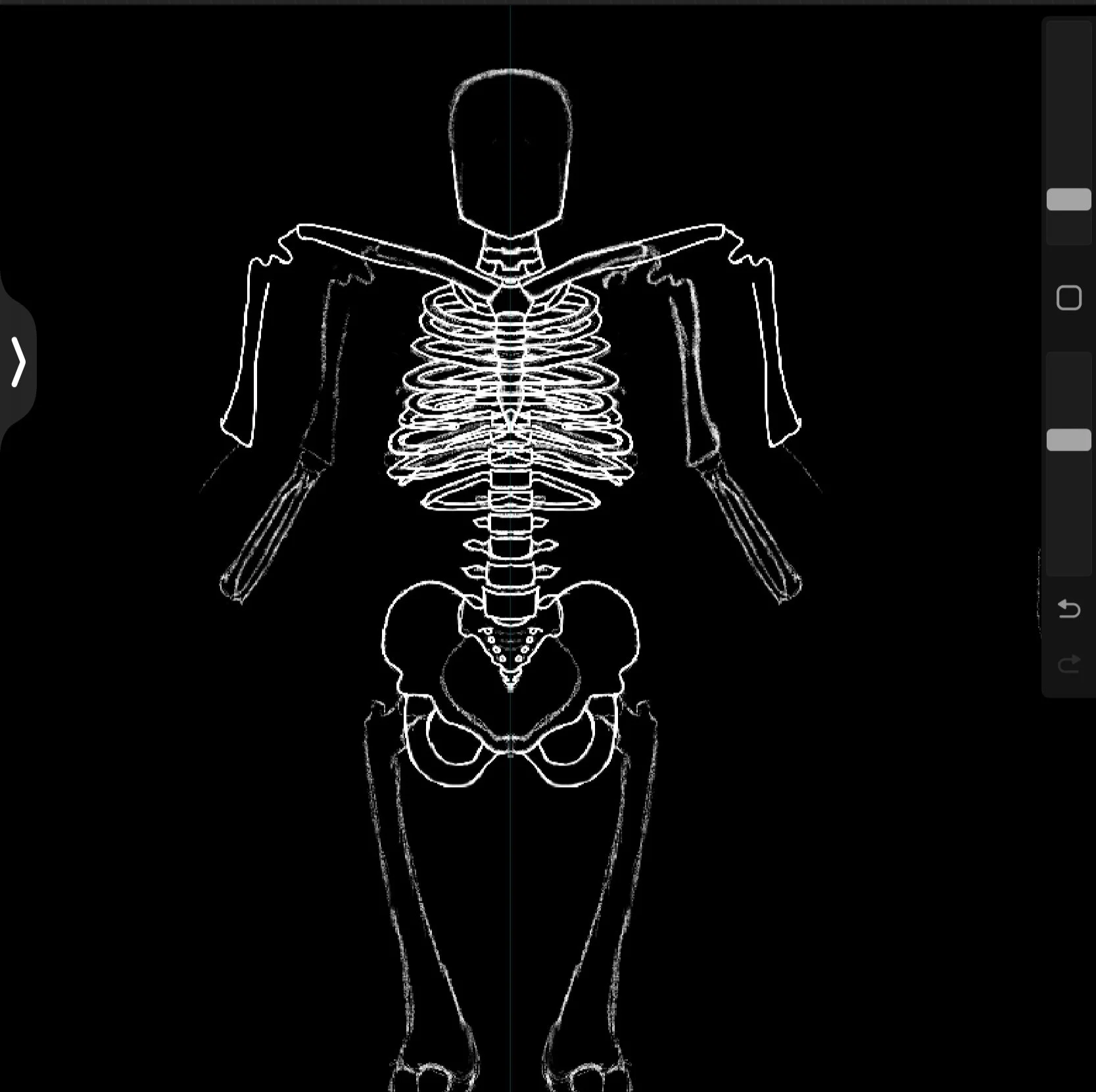 hand drawn sketches of reimagined skeleton of a flying human being [in Procreate]